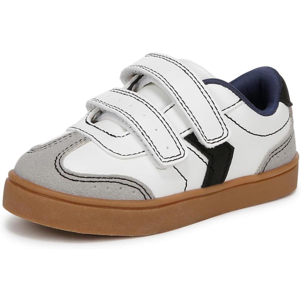Our fan-fave sneakers made into slip ons especially for your littles. MATERIALS: Faux leather or fabric upper, soft fabric lining, and TPR outsole. EASY CLEAN: Pre-treated with Easy Clean Repellant, a topical spray applied to the sidewall of the shoe only, to keep the sides of the shoe’s sole cleaner longer. Care instructions: use water (only) on a household cloth to wipe sidewall of shoe. Individual results may vary. FIT: Slips on with hook and loop closure for secure fit. FEELS: Comfort Insole Technology with cushioning, comfort & arch support. MOVEMENT: Lightweight, flexible construction moves with you. STYLE: Toddler tennis shoes with cute chevron details. These super-comfy toddler boy shoes and toddler girl shoes will be in daily rotation.
