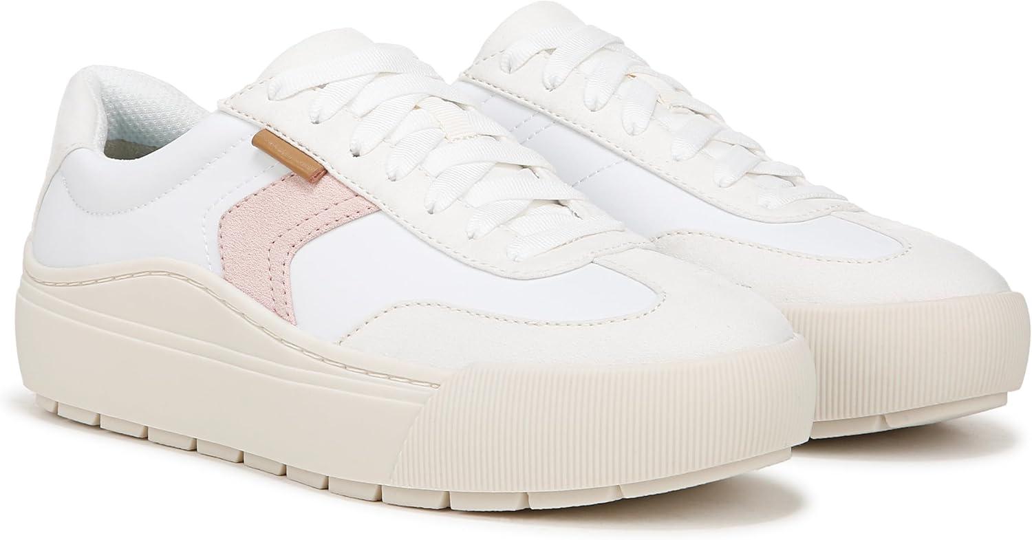 A new update to our TikTok viral sneaker to add to your lineup. SUSTAINABLY CRAFTED: Fabric lining and topcloth partially made from recycled plastic bottles; partially recycled toe box and heel counter. MATERIALS: Partially recycled nylon upper, low chemical faux leather upper, or microfiber upper partially made from recycled plastic bottles. EASY CLEAN: Time Off Win styles with white outsoles are pre-treated with Easy Clean Repellant, a topical spray applied to the sidewall of the shoe only, to keep the sides of the shoe’s sole cleaner longer. Care instructions: use water (only) on a household cloth to wipe sidewall of shoe. Individual results may vary. FIT: Lace up front for secure fit. SUSTAINABLE COMFORT: Anti-microbial, anti-odor Insole Technology with anatomical cushioning, comfort, & arch support that uses 15% cushy plant-based BLOOM® foam insole. MOVEMENT: Lightweight, flexible construction moves with you. STYLE: Casual womens tennis shoes with retro-inspired stitch detailing, chevron accent, flexible 2 inch sport sole or gum sole and 1 1/3 inch platform. CONSCIOUSLY PACKAGED: This style is shipped in an environmentally preferred 1-piece box made with primarily recycled materials that can be recycled & soy-based inks. Retro stitching and viral comfort for the win. A fashion forward take on TikTok’s favorite travel shoes with first-class feels.