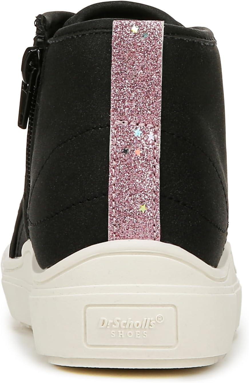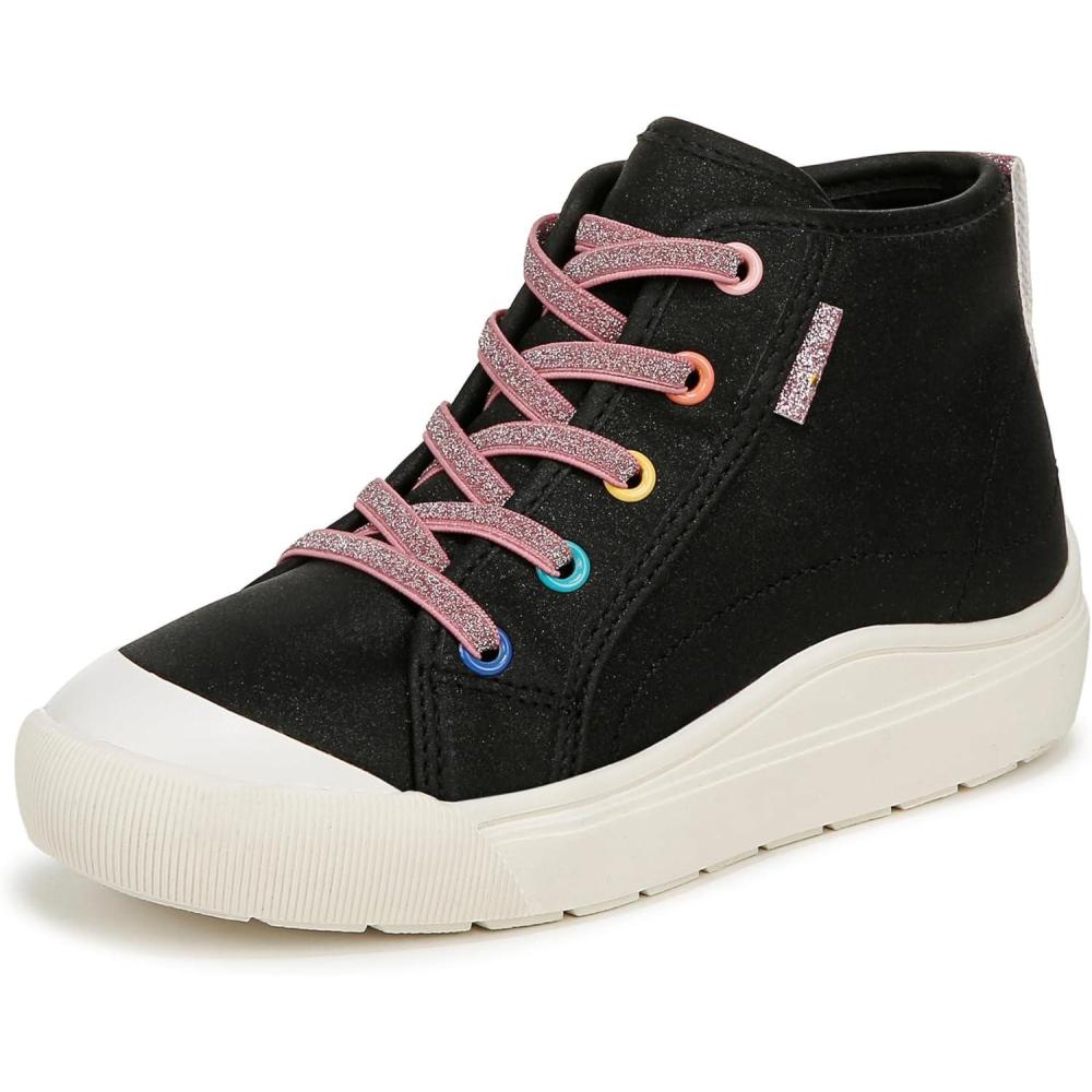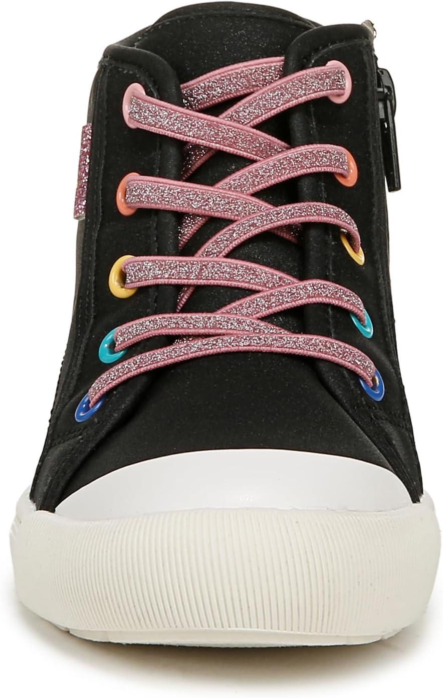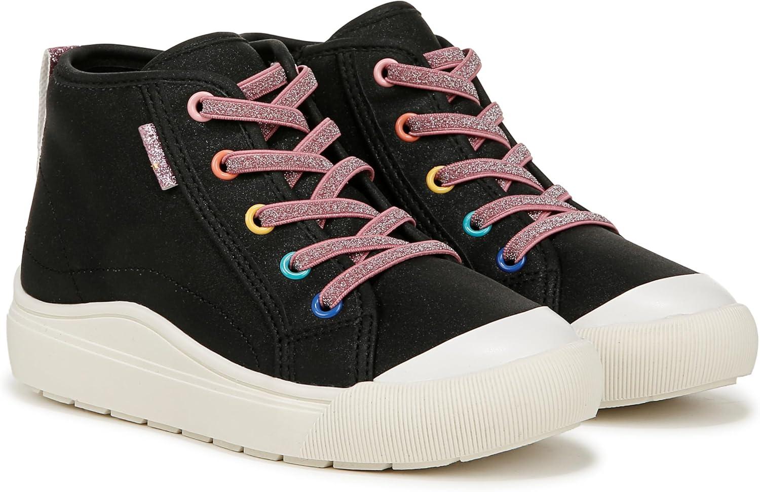 Say hi to comfort and cuteness in these must-have girls shoes. MATERIALS: Faux leather upper and fabric lining. FIT: Inside zipper for easy on/off. FEELS: Comfort Insole Technology with cushioning, comfort & arch support. MOVEMENT: Lightweight, flexible construction moves with you. FEEL-GOOD FLEX: Ultra-flexible outsoles with extra grip and cushioning. STYLE: High top tennis shoes for girls with stretchy faux lace detailing, back pull tab, and 1 inch sport sole. CONSCIOUSLY PACKAGED: This style is shipped in an environmentally preferred 1-piece box made with primarily recycled materials that can be recycled & soy-based inks. It’s giving matchy-matchy: a pint-sized version of mom’s high top sneaks with viral comfort.